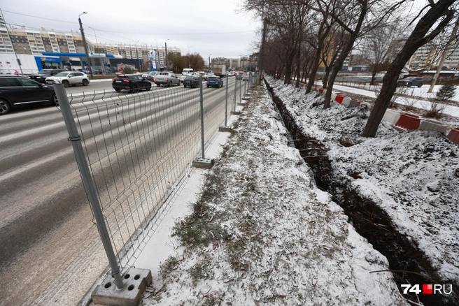 На Братьев Кашириных вырыли траншею и начали ставить ограждение вдоль дороги. Работы на отрезке улицы от Косарева до Краснознаменной вызвали вопросы у водителей и пешеходов. В администрации Челябинска рассказали, что происходит.