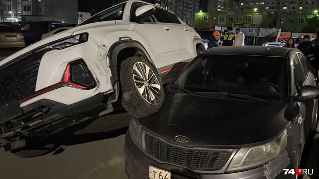 В Челябинске уходивший от преследования ДПС кроссовер, приземлился на легковушку. Инцидент произошел вечером во вторник, 18 ноября.
