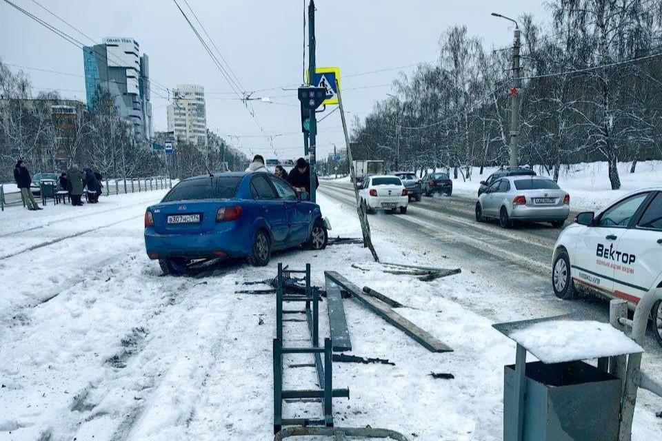 Водитель легковушки разворотил остановку и парализовал движение трамваев в ЧелябинскеДТП случилось возле областной больницы № 3