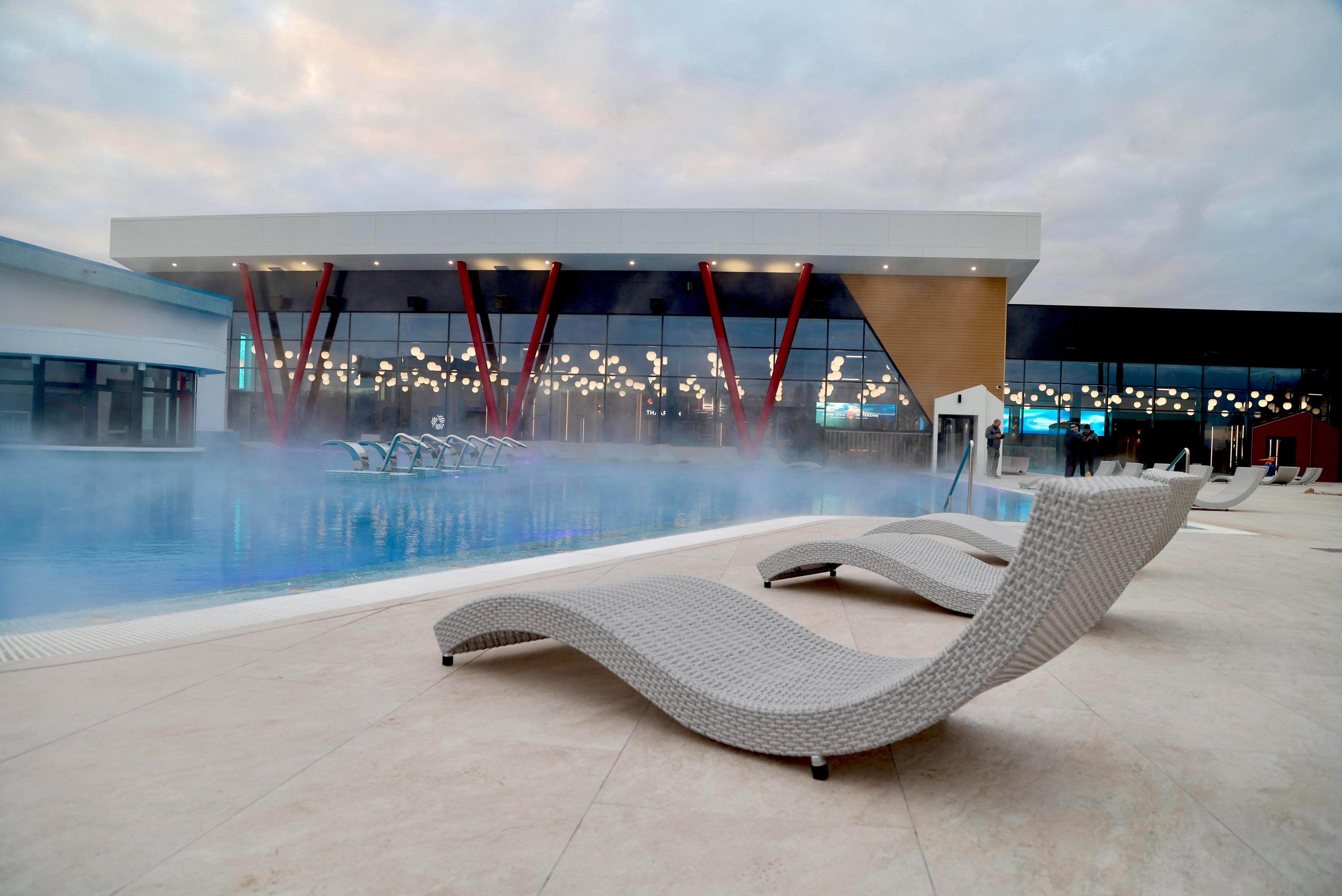 В парке «Притяжение», в котором побывал Путин, запускают термальный комплекс — фоторепортажТам будут работать уличный бассейн, 13 бань и саун