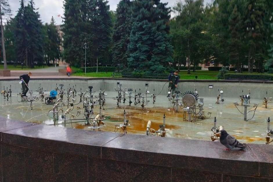 В центре Челябинска начали чистить фонтан, состояние которого возмутило горожанКоричневую воду оттуда спустили