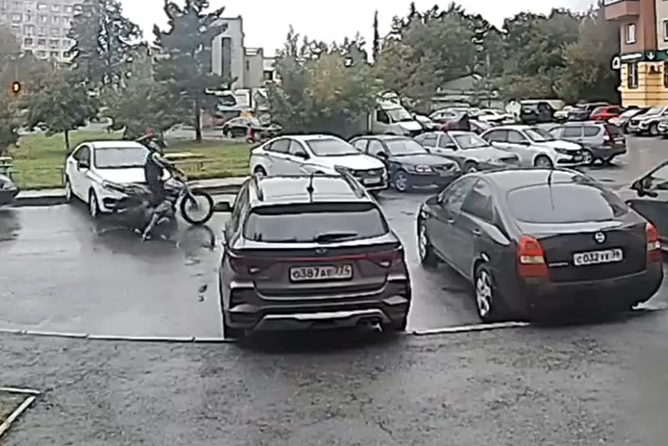 В Челябинске мотоциклист сбил ребенка и скрылся (видео)За ним погнался отец пострадавшего, но безрезультатно